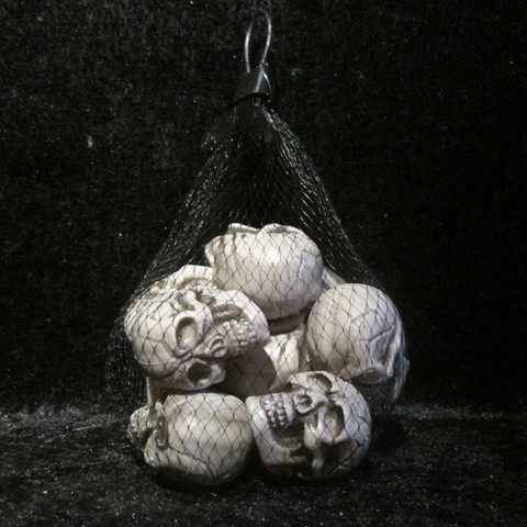 Maar ze hadden dus wat ik zocht, een zak met doodskoppen. Niet voor Helloween maar om mee te hobby'en. Ik had een soort van 'brainwave', een lege fles en ... dus een hele zak met doodskoppen. Voor de fles een mooi formaat. Ze zijn niet zo groot, de fles ook niet. Ik heb er nog een aantal over, wat ik daar mee ga doen? ... Nog geen idee maar ze komen nog wel van pas. Na wat prutsen en verven is dit het resultaat geworden. Een lege fles wodka, 3d-verf, wat geduld en ... een doodskop, gekocht bij de Goudse feestwinkel.